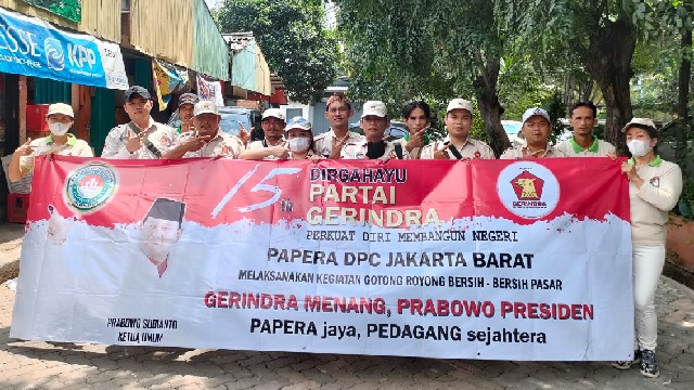 HUT Gerindra Meriah dan Merakyat, PAPERA Jakbar Kompak Bersih-Bersih Pasar