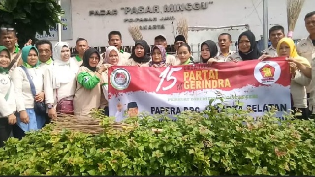 DETIKMERDEKA.COM- Perayaan Hari Ulang Tahun (HUT) Partai Gerindra ke-15 terus mengalir dari sejumlah sayap partai tersebut. Perayaan itu dilaksanakan oleh DPC PAPERA Jakarta Selatan (Jaksel) dalam bentuk bergotong-royong membersihkan pasar di Pasar Minggu, Jakarta, Ahad (05/02/2023)
