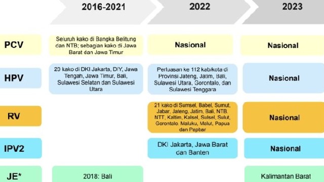 Direktur Pengelolaan Imunisasi, dr. Prima Yosephine, MKM dalam temu media peringatan Pekan Imunisasi Dunia tahun 2023 secara daring pada Senin (27/3) menyebut bahwa pengenalan beberapa antigen baru ini yaitu PCV dan HPV dilakukan secara bertahap.