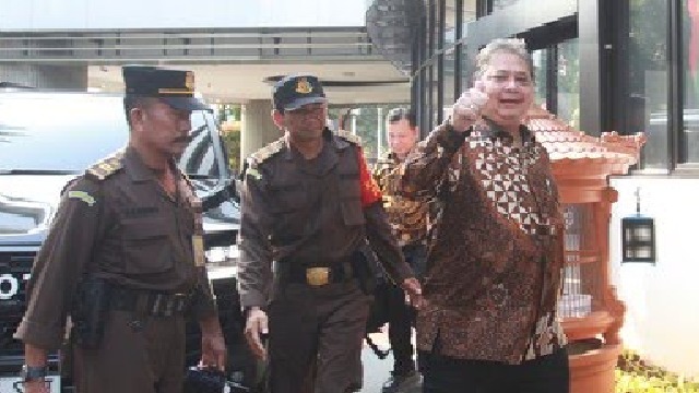 Dengan pengawalan ketat, Airlangga saat itu hendak bergegas menuju mobil Toyota Land Cruiser hitam dengan nomor polisi B 2585 SJI untuk meninggalkan Kejagung. Namun sejumlah awak media masih berupaya untuk mewawancarai