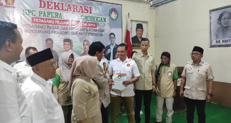 DPC Papera Grobogan Resmi Melantik Tri Budiono, dan Siap Menangkan Prabowo PresidenDETIKMERDEKA.COM- Ribuan pedagang yang tergabung dalam Pedagang Pejuang Indonesia Raya (PAPERA) berkumpul di Gedung DPC Partai Gerakan Indonesia Raya (Gerindra), Jalan Gajahmada, Purwodadi, Rabu, (22/