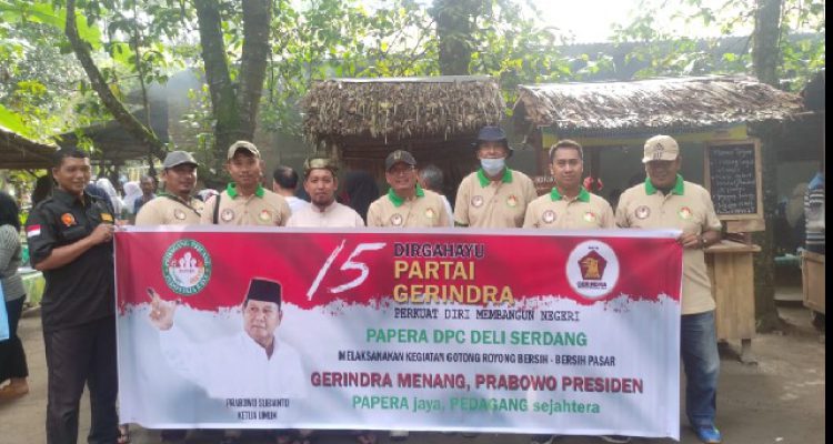 DPC PAPERA Deli Serdang, Rayakan HUT Gerindra ke-15 dengan Gotong-Royong di Pasar, Wahyudi: Kita Berjuang di Barisan Politik Prabowo Subianto. DETIKMERDEKA.COM- Dalam menyambut Hari Ulang Tahun (HUT) Partai Gerindra yang ke-15 tahun, DPC PAPERA Deli Serdang melaksanakan Kegiata