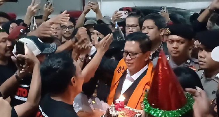 TANI MERDEKA – Suasana haru dan penuh semangat terlihat di basement Pengadilan Tipikor Jakarta Pusat, pada Kamis, 10 Juli 2025, ketika puluhan pendukung merayakan ulang tahun ke-59 Sekretaris Jenderal PDI Perjuangan, Hasto Kristiyanto.Perayaan berlangsung setelah Hasto s