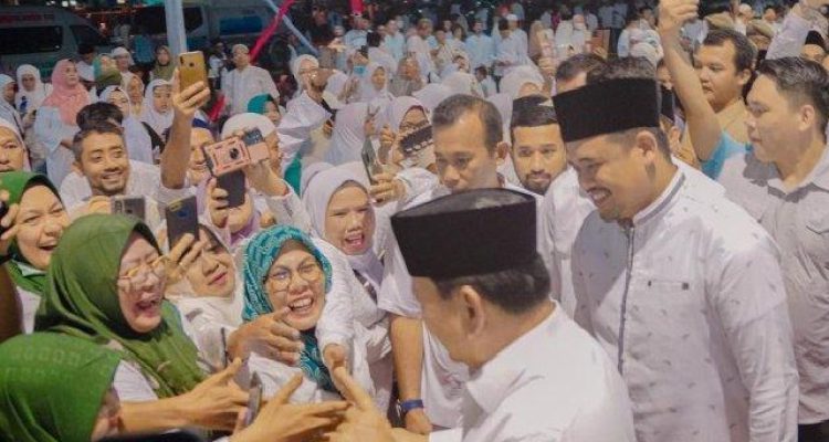 Antusiasme Warga Berswafoto Bareng Menhan Prabowo dan Wali Kota Meda Bobby NasutionDETIKMERDEKA.COM- Lantunan shalawat menyambut kedatangan Wali Kota Medan Bobby Nasution dan Menteri Pertahanan (Menhan) RI Prabowo Subianto dalam acara Dzikir dan Doa Awal