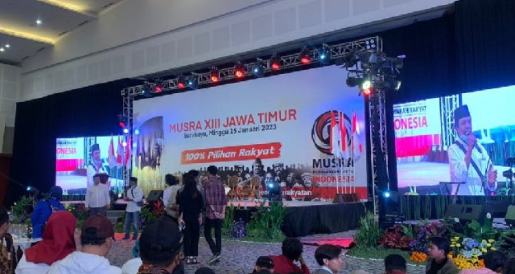 Dukungan Gemuruh Untuk Prabowo Subianto di Musra ke-XIII JatimDETIKMERDEKA.COM- Musyawarah Rakyat (Musra) Jawa Timur kembali di gelar di gedung Convention Hall City Surabaya. Pada acara edisi ke-XIII itu banyak anggota yang meneriakan nama Menteri Pertahanan, Prabowo Subianto.