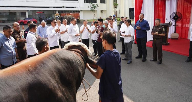 Jaksa Agung Serahkan 33 Hewan Kurban Pada Hari Raya Idul Adha 1444 H DETIKMERDEKA.COM- Bertempat di depan Gedung Utama Kejaksaan Agung, Jakarta Selatan. Jaksa Agung ST Burhanuddin memberikan sambutan pada penyerahan hewan qurban, Selasa 27 Juni 2023, kemarinJaksa A