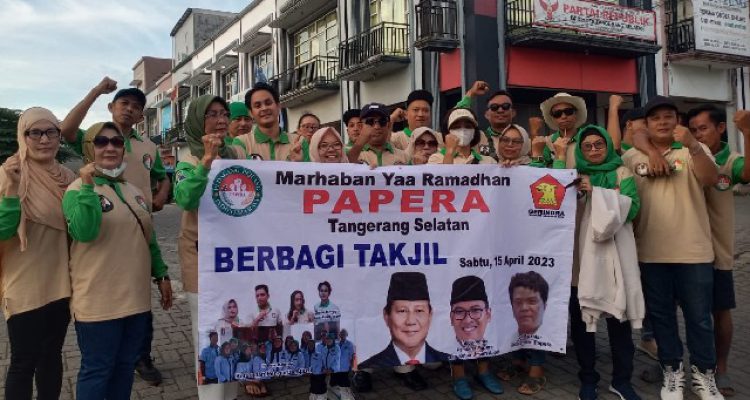 Berkah Ramadhan, Papera Tangerang Selatan Bagikan Takjil dan Ajak Warga Dukung Prabowo DETIKMERDEKA.COM- Pedagang Pejuang Indonesia Raya (Papera) Kota Tangerang Selatan menggelar bagi bagi takjil untuk berbuka puasa, Ahad (16/4/23) sore, acara dilakukan tepat di Jalan Raya LUK