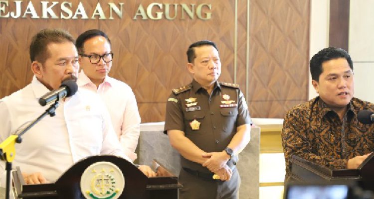 Jaksa Agung dan Menteri BUMN MelakukanBersih-Bersih DETIKMERDEKA.COM- Bertempat di Gedung Utama Kejaksaan Agung, Jaksa Agung Burhanuddin menyampaikan bahwa telah menerima kunjungan silaturahmi dengan Menteri BUMN Erick Thohir dalam rangka mendukung bersih-bers