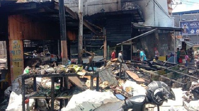 Jumlah bangunan terbakar sebanyak 15 unit, kondisi rusak berat. Rinciannya, 12 unit yang biasa ditempati pedagang sayuran, sembako, pedagang ayam potong, dan pedagang ikan.