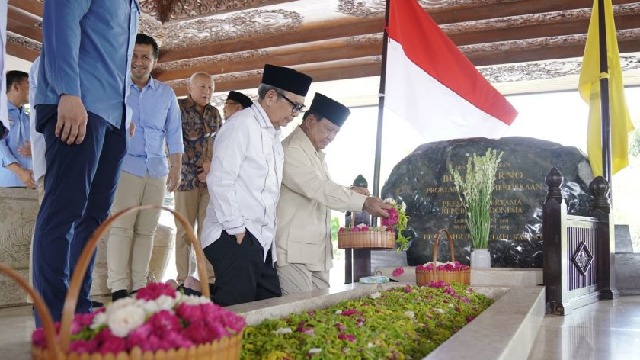 DETIKMERDEJA.COM,- Ketua Umum Partai Gerindra yang juga Calon Presiden (Capres) nomor urut 2, Prabowo Subianto berziarah ke makam Presiden ke-1 Republik Indonesia, Ir Soekarno, di Blitar, Jawa Timur, Minggu 17 Desember 2023.