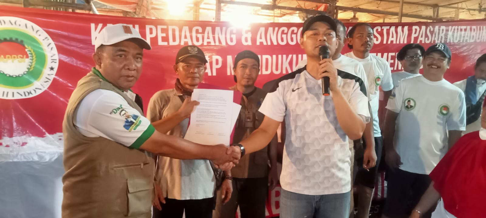 Ketua komisariat Asosiasi Pedagang Pasar Seluruh Indonesia (APPSI) Pasar Kutabumi Kholid menyatakan kesiapan pengurus dan pedagang mendukung kemenangan Prabowo Gibran dalam konstelasi Pilpres 2024
