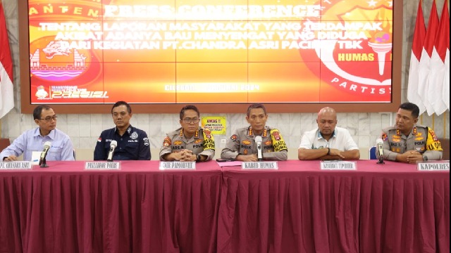 Polda Banten Press Conference Terkait Penanganan Bau Menyengat Di Duga Dari Kegiatan PT Chandra Asia Pasific