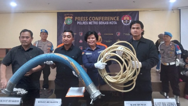 Satreskrim Polres Metro Bekasi Kota Gelar Ungkap Kasus SPBU Jual BBM Pertalite Bercampur Air