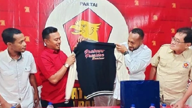 Politik 3 tahun lalu Menemui Kader Gerindra Fak-Fak, Papua Barat. Yan Mandenas Serahkan Jaket Bertulis “Prabowo Presiden, Gerindra Menang”